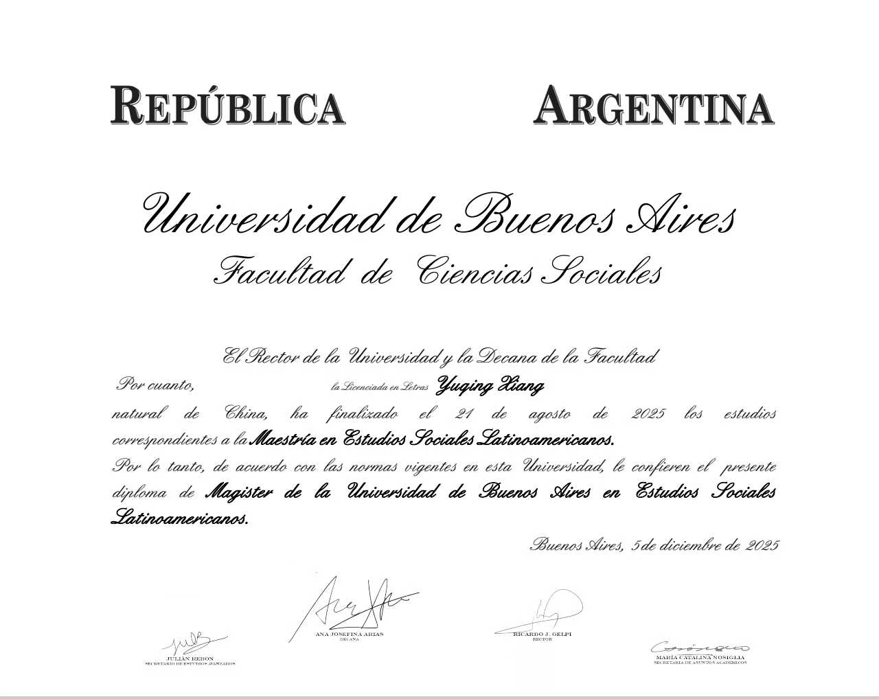 Xiang Yuqing, la nueva Magíster de la UBA que llegó de Sichuan
