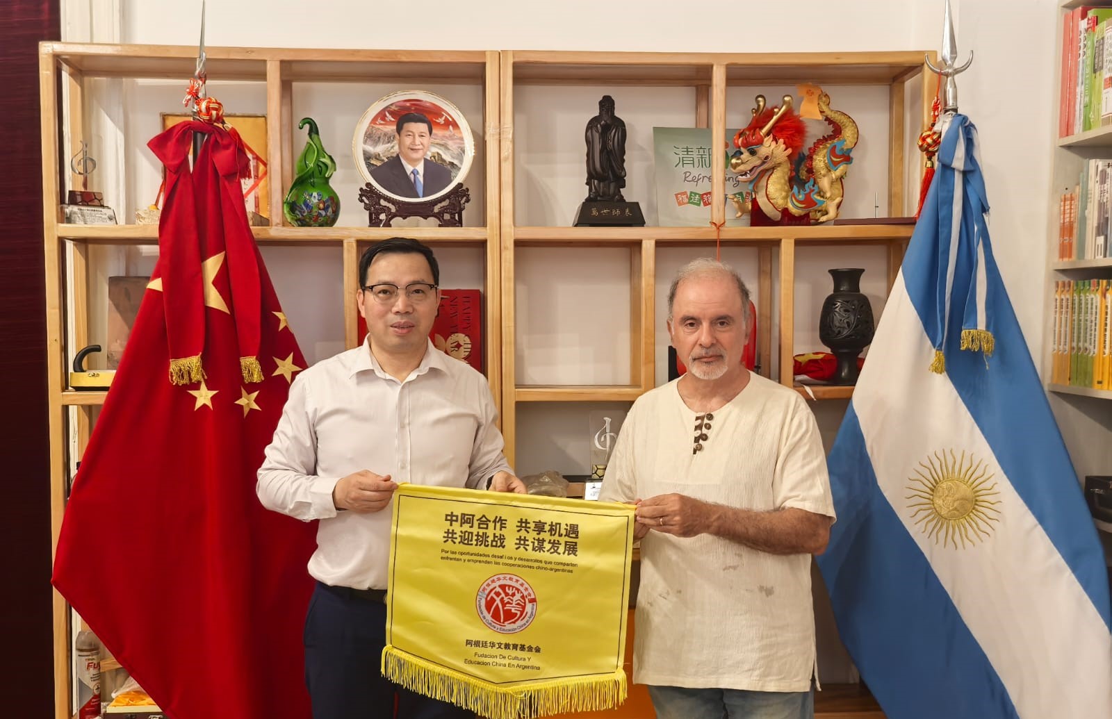 Su presidente, Liu Fangyong (Willy), la recibió para incluir en la biblioteca que su institución posee en el barrio porteño de Balvanera.