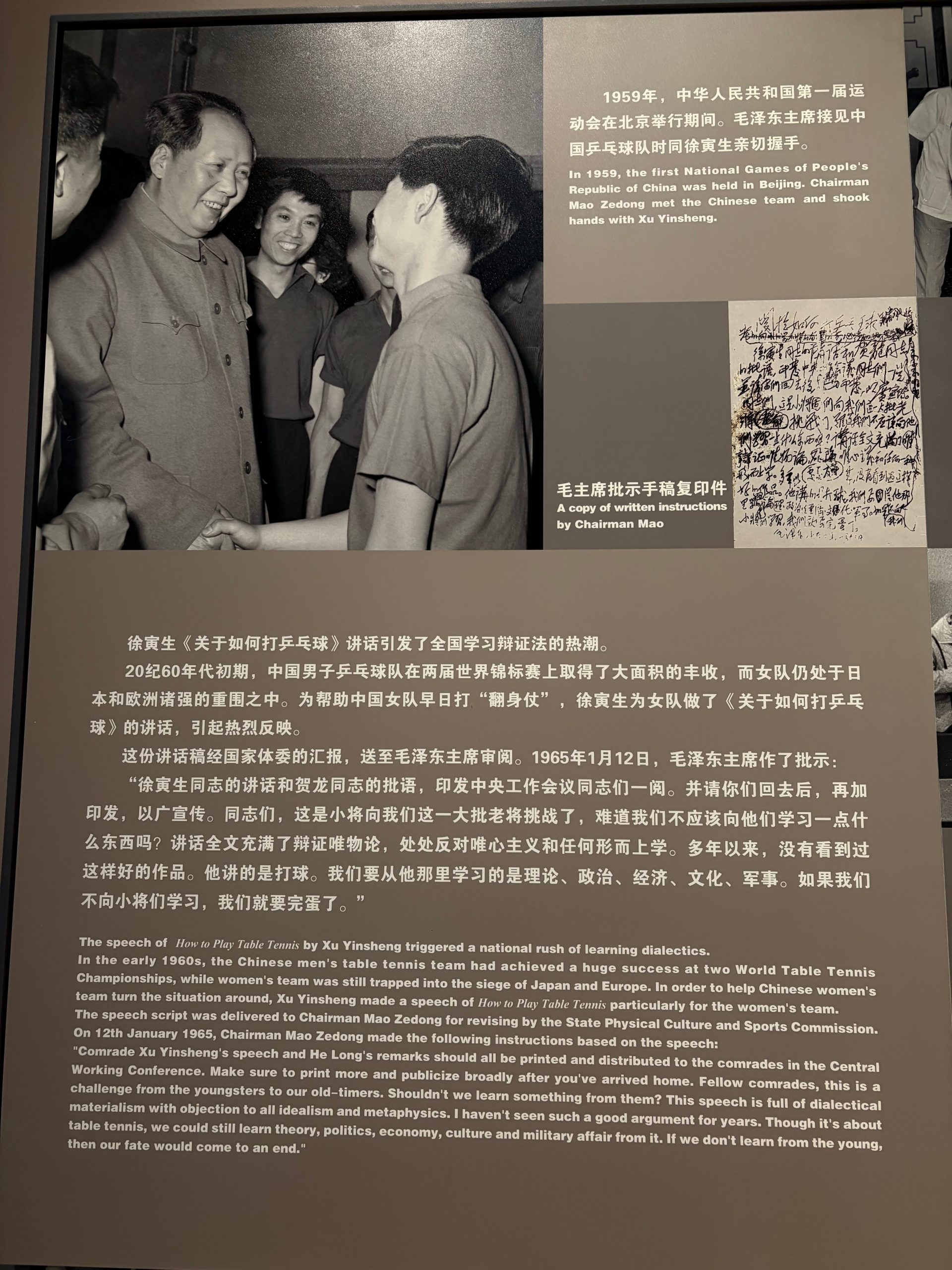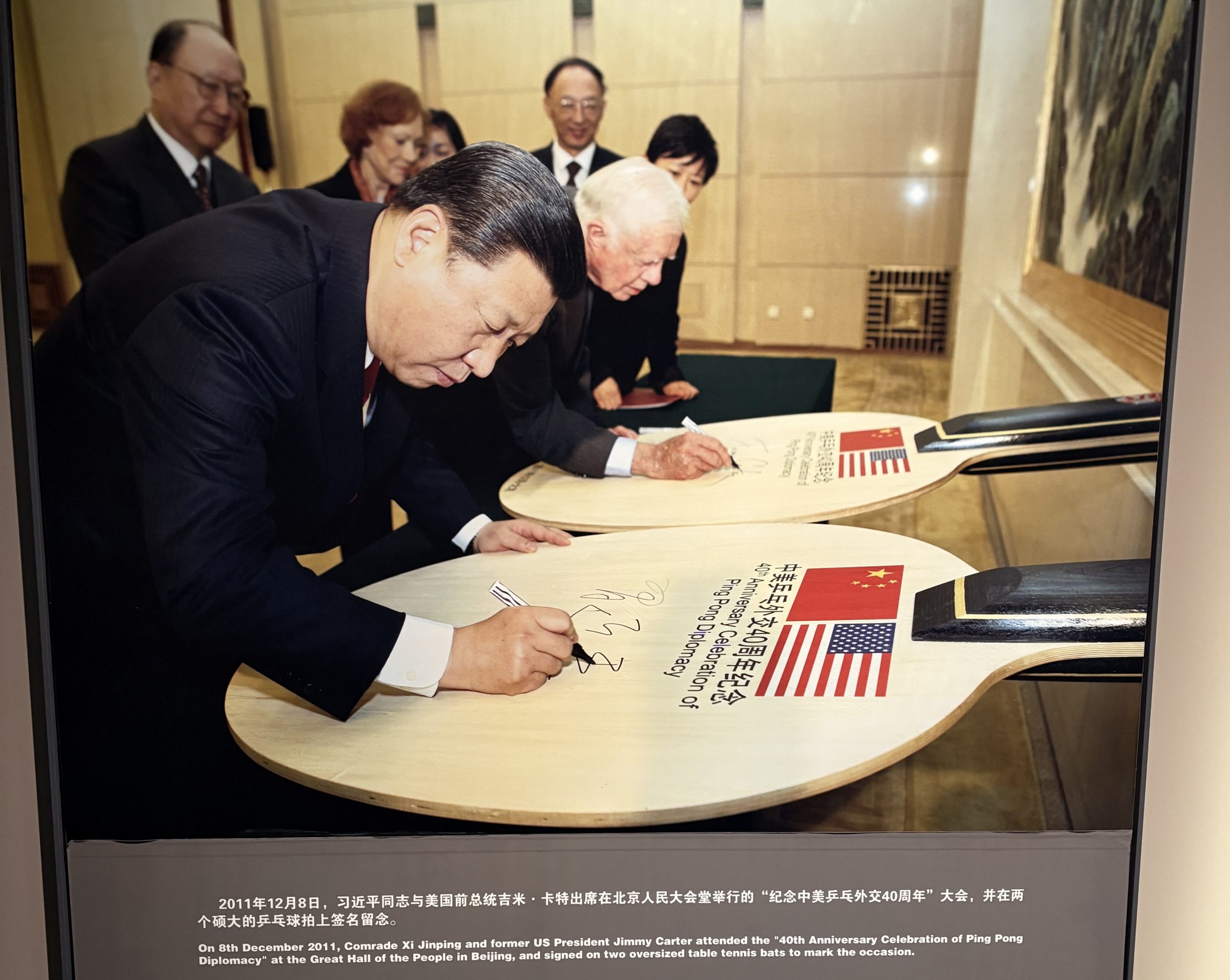 El tenis de mesa no está asociado únicamente a Mao, ya que el expresidente de Estados Unidos de América Jimmy Carter, visitó el museo y simultáneamente con el presidente Xi Jinping firmaron sus autógrafos en unas raquetas gigantes, dejando testimonio de la visita.