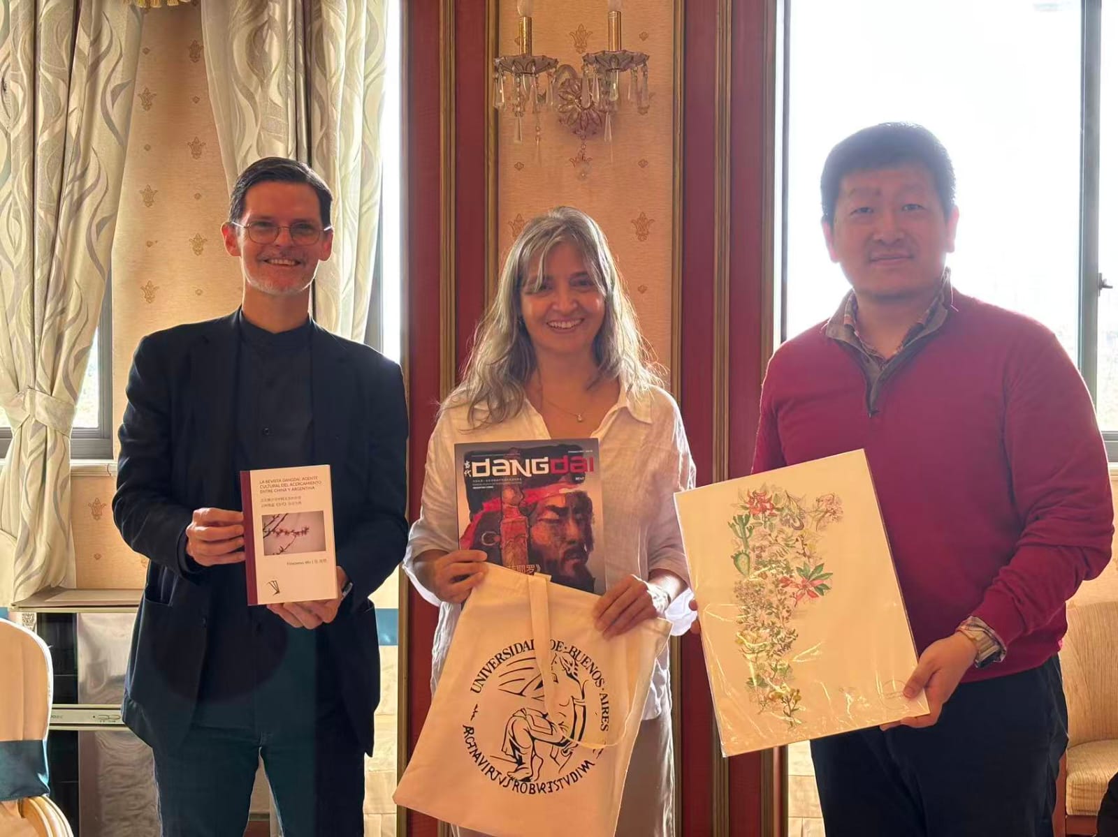 A través del ex embajador argentino en China, Sabino Vaca Narvaja, y de la profesora de la UBA e investigadora Conicet Verónica Giordano, un libro sobre la trayectoria de DangDai (de Fenming Wu) y ejemplares recientes de la publicación llegaron a Shanghái.